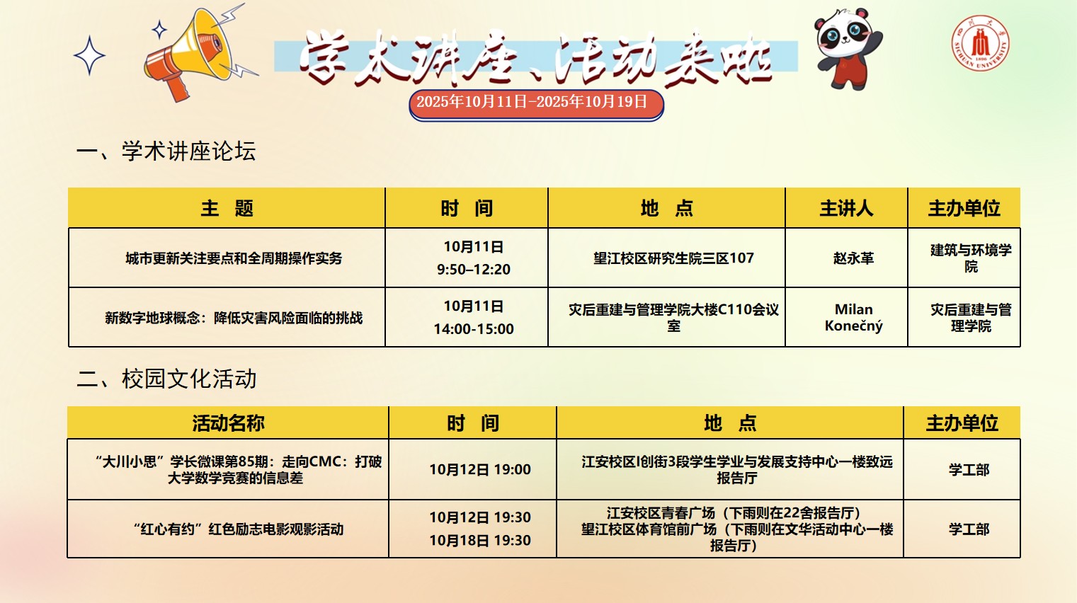 色情网址大全 2025年10月11日-2025年10月19日校园文化活动预告