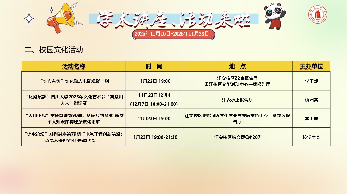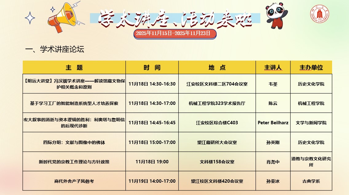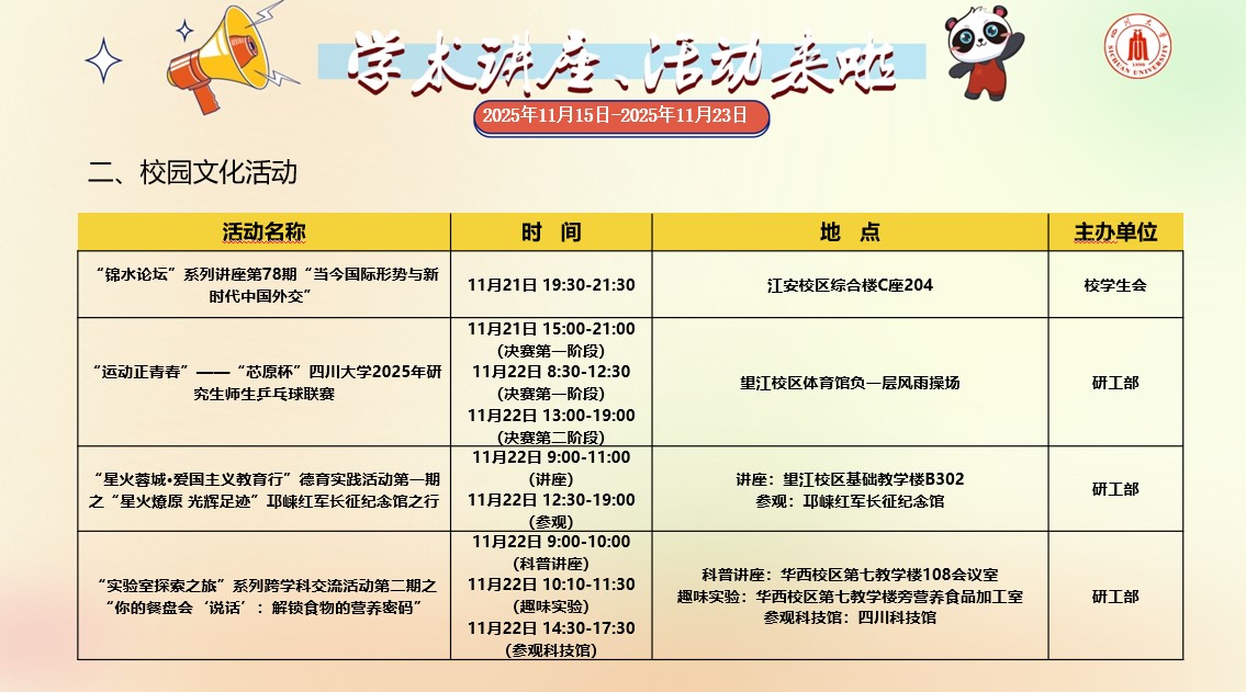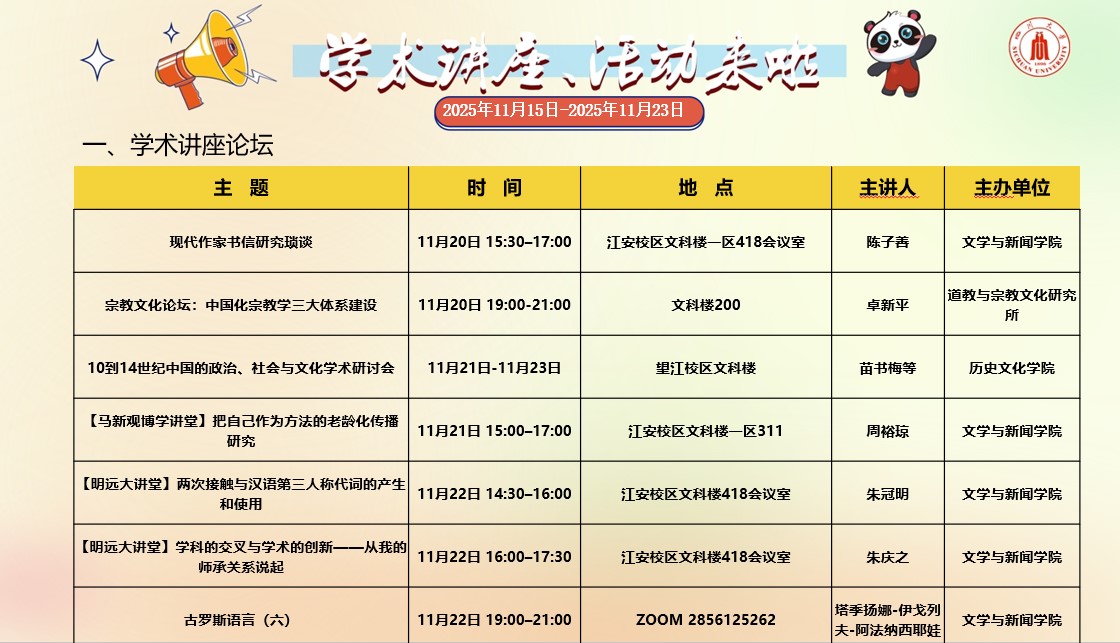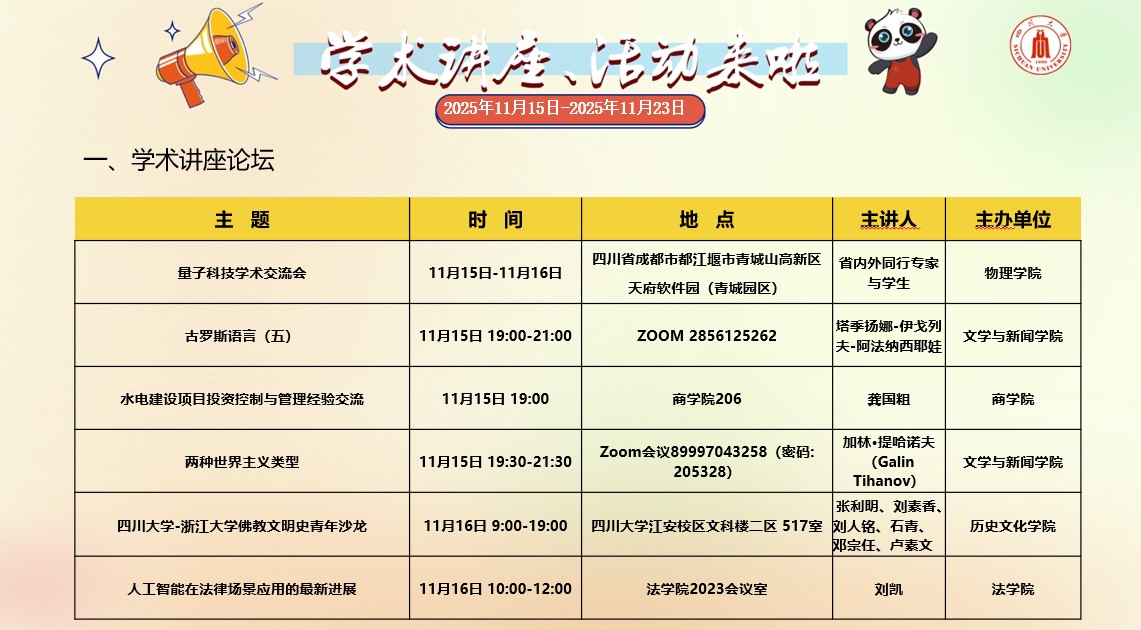 色情网址大全 2025年11月15日-2025年11月23日学术讲座和校园文化活动预告