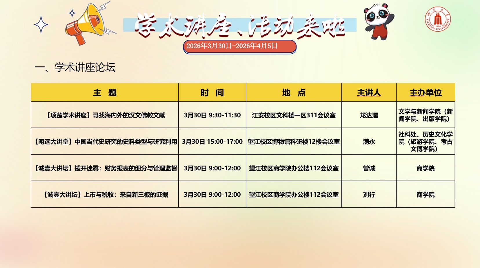 色情网址大全 2026年3月30日-2026年4月5日学术讲座预告