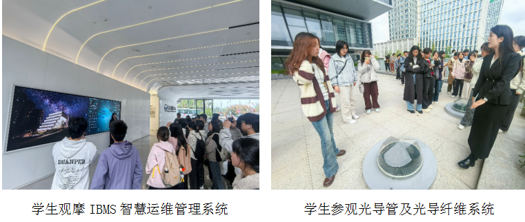 土木工程系组织2024级土木专业全体本科生及部分2025级工科试验班新生,走进中国五冶集团零碳科技中心围绕“国家级零碳建筑”的核心特色开展沉浸式研学实践,重点观摩三项支撑“零碳属性”的关键技术:IBMS 智慧运维管理系统(实时监测能耗、联动设备智能调控,大屏演示降碳效果)、阳台储能与垂直绿化系统(储能供应急用电,绿化调节室温实现“被动节能”)、光导管及光导纤维系统(导入自然光替代人工照明)。