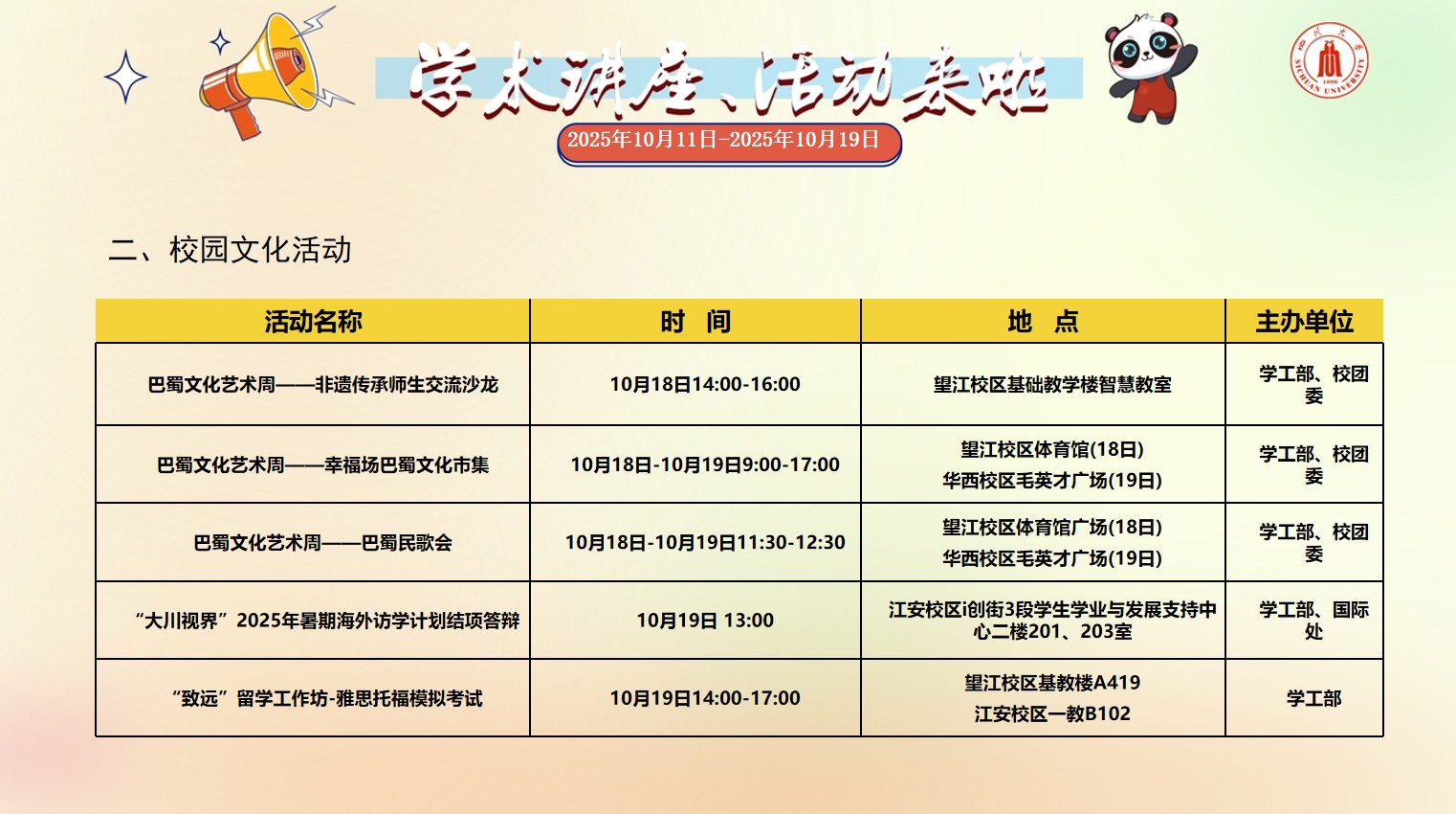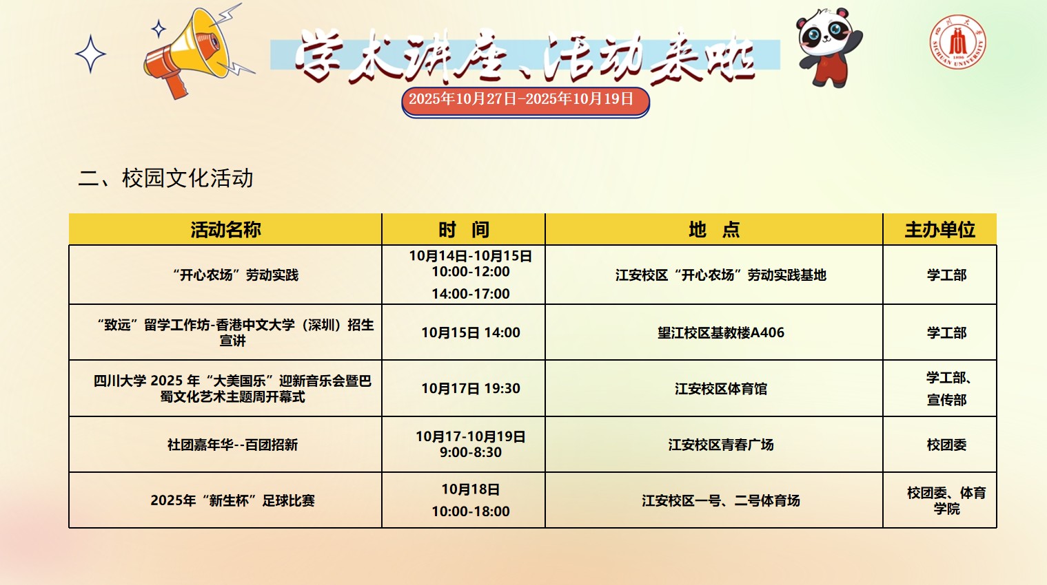 色情网址大全 2025年10月11日-2025年10月19日校园文化活动预告