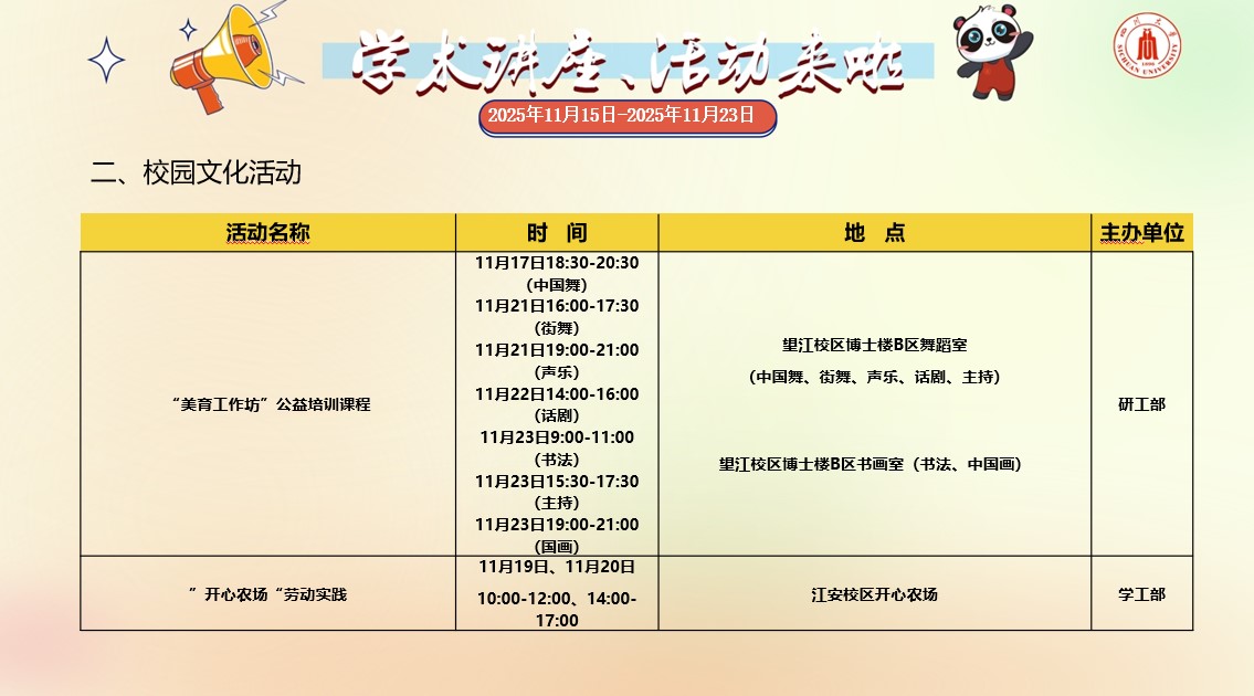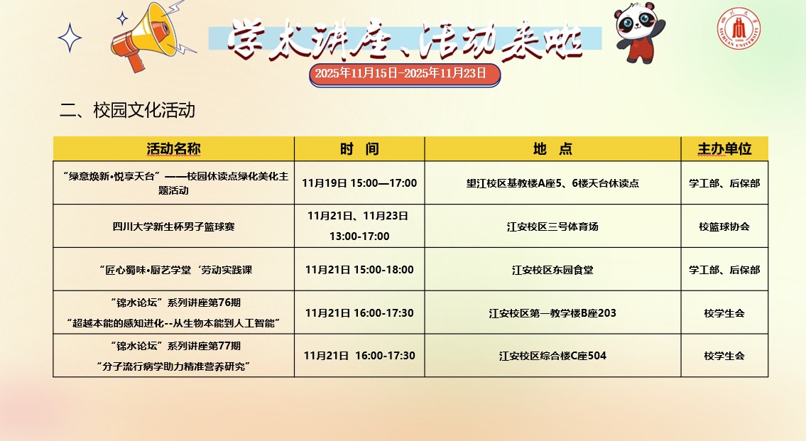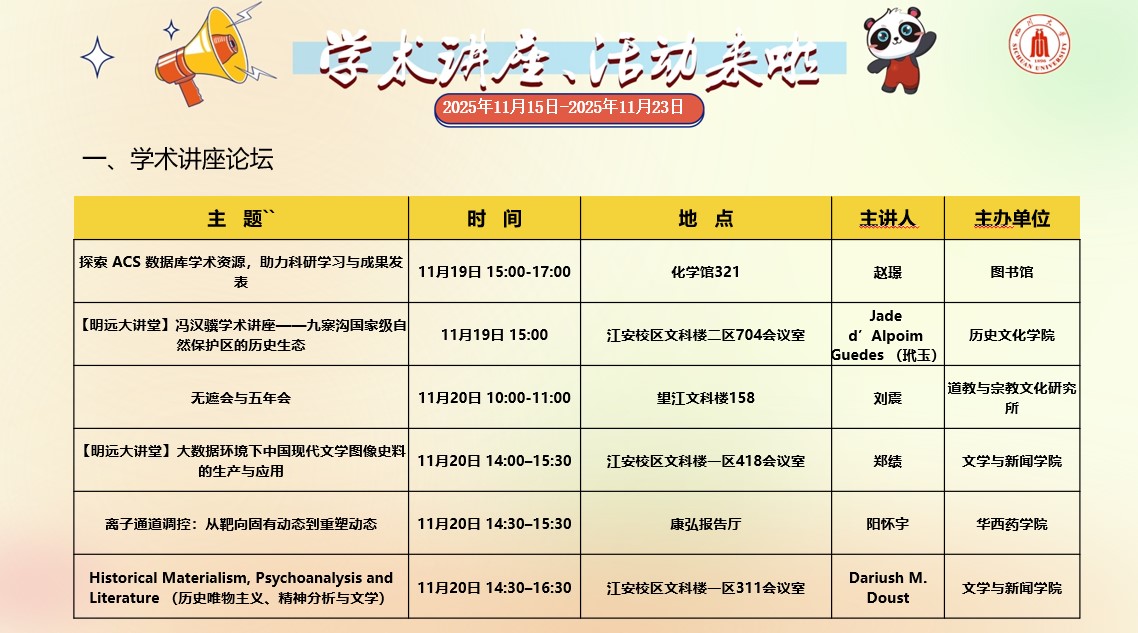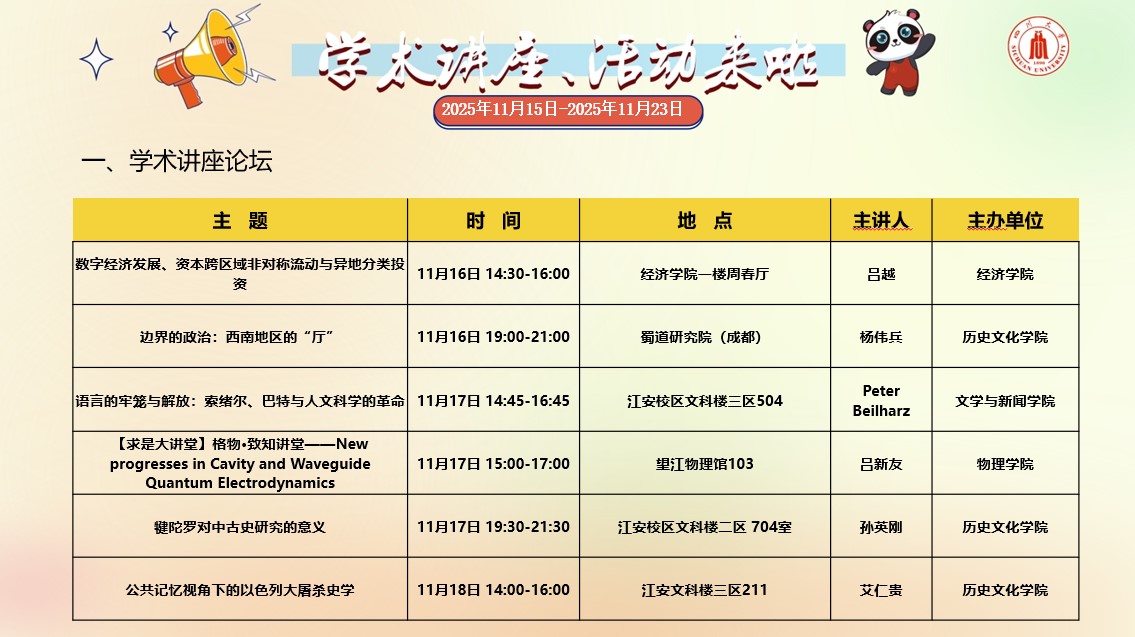 色情网址大全 2025年11月15日-2025年11月23日学术讲座和校园文化活动预告