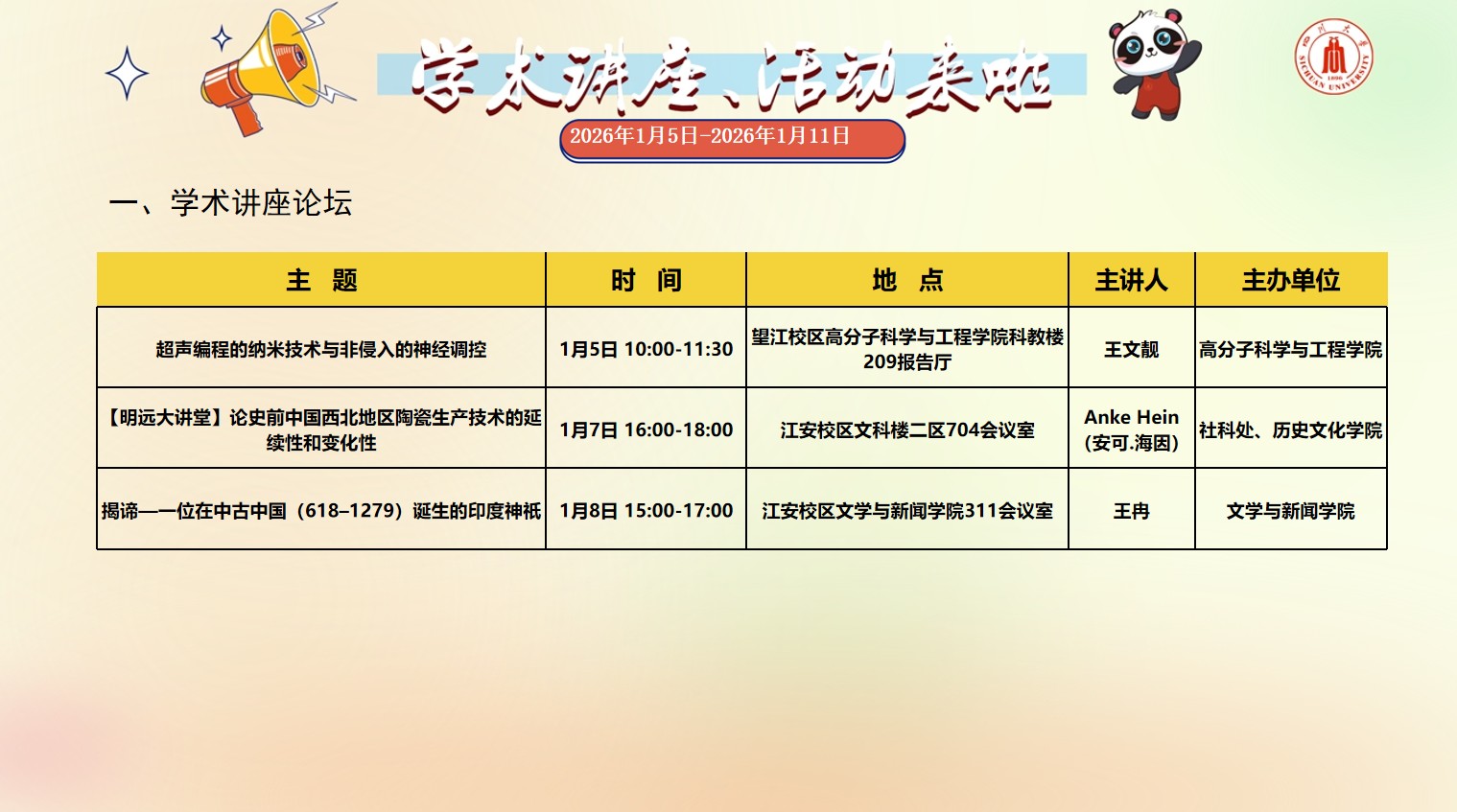 色情网址大全 2026年1月5日-2026年1月11日学术讲座预告