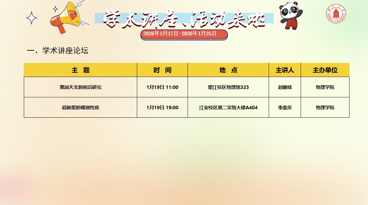 色情网址大全 2026年1月17日-2026年1月25日学术讲座预告