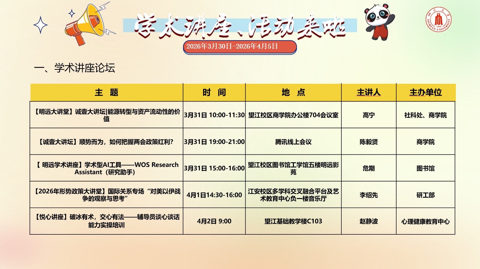 色情网址大全 2026年3月30日-2026年4月5日学术讲座预告