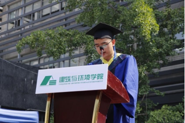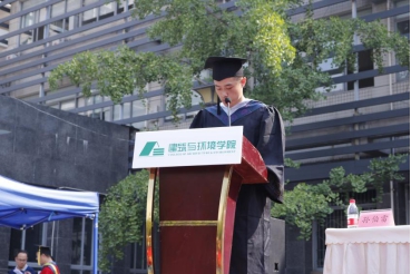 本科毕业生代表环境科学专业沈子烨同学以能够在建环学院进行专业学习而自豪,四年来,在学院领导的帮助和关怀下,在专业老师的悉心指导下,在同辅导员老师的沟通中,他不断成长并最终选择了继续深造。他希望能够凭借着自己的不懈努力,带着老师们的祝福和对专业的热爱,饱含激情地开拓和探索,逐步实现自己的理想�