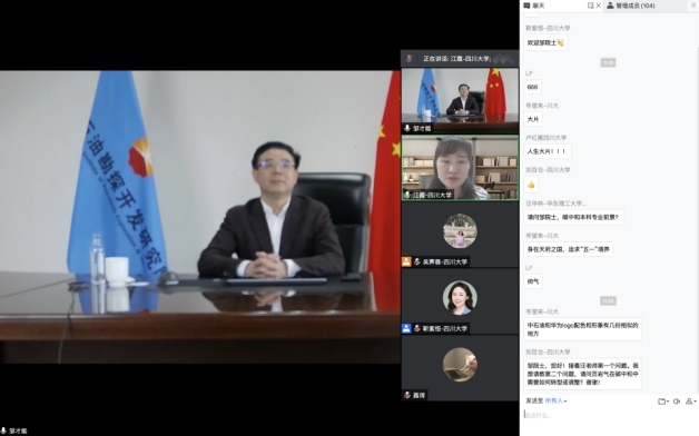 院士邹才能教授来校做了主题为“碳中和下能源转型与学科人才培养”的专题学术报告。应疫情防控要求,报告采取线上召开的形式组织,江霞教授主持了报告会。