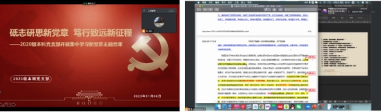 2020级本科党支部组织开展集中学习新党章活动。支部书记杨颖讲授“砥志研思新党章,笃行致远新征程”主题党课,支部全体成员线上参与。