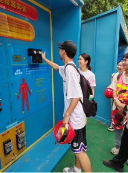 随后,参观了传统式建筑工程实训中心。从砖混结构、砌体结构等传统建造工艺到预制装配式围墙、预制柱、预制板等前沿技术,老师进行了对比介�工程千千万,安全第一条。在老师不失幽默的安全教育讲解下,同学们积极思考,也踊跃尝试�