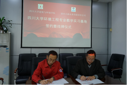 副院长刘敏、环境科学与工程系教师陈滢、高辉,以及天源水务公司总经理徐学军、副总经理张鹏、国际工程部主任黎万全、崇州经济开发区污水处理厂厂长徐映铨等出席参加了签约暨挂牌仪式。会议由黎万全主持。