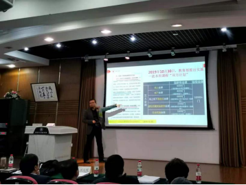 特色的一流课程,可充分利用课堂教学改革为突破口,以“教室革命”作为抓手,采用“小班化、面对面、点对点”的方式进行教学改革。他接着介绍了五类一流课程的申报要点和基本要求,并以自身申报经验举例,详细介绍了一流课程申报各项准备材料的难点和重点领域。