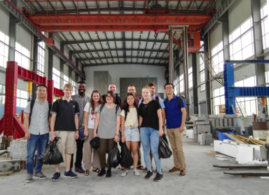 老师的带领下一同参观了土木工程结构实验室,了解了实验室里部分教学和科研试验实例,让外国同学们体验到了中外实验室的不同氛围和环境。