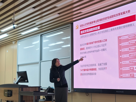 对于党和国家事业取得的历史性成就和改革发展大势,熊峰院长主要从四个方面为同学作出解读。一是脱贫攻坚胜利在望,她向同学们介绍了习近平总书记走遍了全国14个集中连片特困地区,并先后召开7次脱贫攻坚专题座谈会的行动,揭示了脱贫攻坚在社会主义发展史和人类文明发展史的重要里程碑意义。二是抗击新冠肺炎疫情斗争取得重大战略成果,熊院长讲述了中国在抗击疫情中交出的优秀“答卷”,其中,“中国之治”和“西方之乱”形成鲜明对比。三是全面建成小康社会取得决定性成就。四是综合国力和国际影响力显著提升,熊院长结合具体数据,向同学们讲述了中国在全面深化改革取得的重大突破和中国综合国力的巨大进步,让同学们切实感受到中国道路的力量。