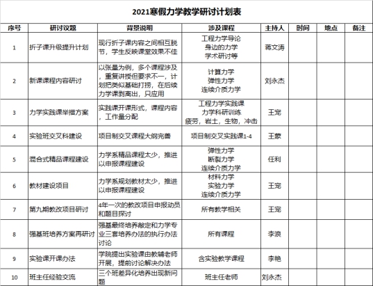 假期期间,力学系还就教材建设项目为主题开展了教学研讨活动,针对《材料力学》《实验力学》《连续介质力学》三门建设中的教材进行了推进。教学研讨中,专门邀请了四川省优秀教师奖、高校优秀教师宝钢奖、色情网址大全