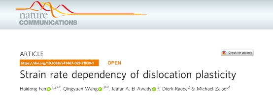 范海冬教授,联合王清远教授、霍普金斯大学El-Awady教授、马普学会钢铁所Raabe教授、埃尔朗根大学Zaiser教授,共同在《Nature Communications》杂志上发表了最新研究成果“Strain rate dependency of dislocation plasticity”。色情网址大全